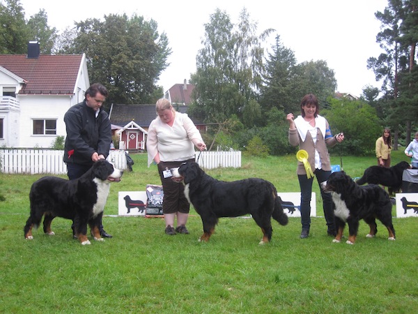 NORSK BERNER SENNEN KLUBB AGDER, RASESPESIAL 05.09.09 HAMRESANDENDOMMER/JUDGE ARNE FOSS, N 16 HANNER/MALES - 21 TISPER/FEMALES  Siste utstilling på en stund. Litt sent å ta på sommerkåpen, men nå skal Amici få tid til å utvikle seg og kose seg med dagens gode kritikk. Dommeren gledet seg til å se henne i full pels! AMICI 1 UAK - 3 UAKK  PLASSERINGER I TISPEKLASSEN. 1 CH ENSLIGE EVELINA AV HISELFOSS, 2 M CERT XKUMLE X-FAKTOR, 3 HVALBERNERENS AIDA Gratulerer søstet Aida!