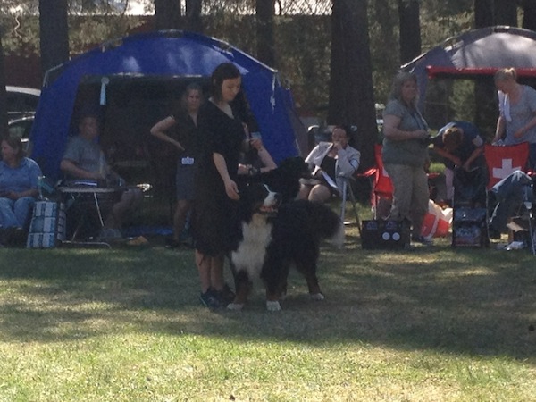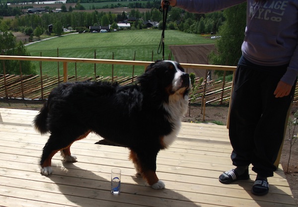 Dommer/Judge: Anita Al-Bachy (35 hanner/males-53 tisper/females  Berneramici´Marco MaGhi Very Good åpen klasse/open clas  Marco bor like ved Frya og er til daglig odelsgutten på garden og tilbringer hele sommeren på setera. Et bedre liv kan ikke en berner ha. Ikke rart halen blir litt høy når en dras med på utstilling, den ble i høyeste laget for dommeren, dermed glapp eexellenten.