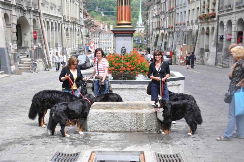 Slik er det å være Berner i Bern! Menneskene våre ville ha et bilde av oss i byen vi engang kom fra. Det var det mange andre som også ville, vi følte oss som de reneste kjendisene der folk strømmet til. Er vi ikke flinke som blir liggende i fellesdekk med alle disse menneskene som fyker rundt! |
